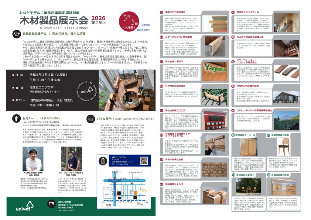 みなとモデル二酸化炭素固定認証制度『木材製品展示会2026』が今年も開催されます!
