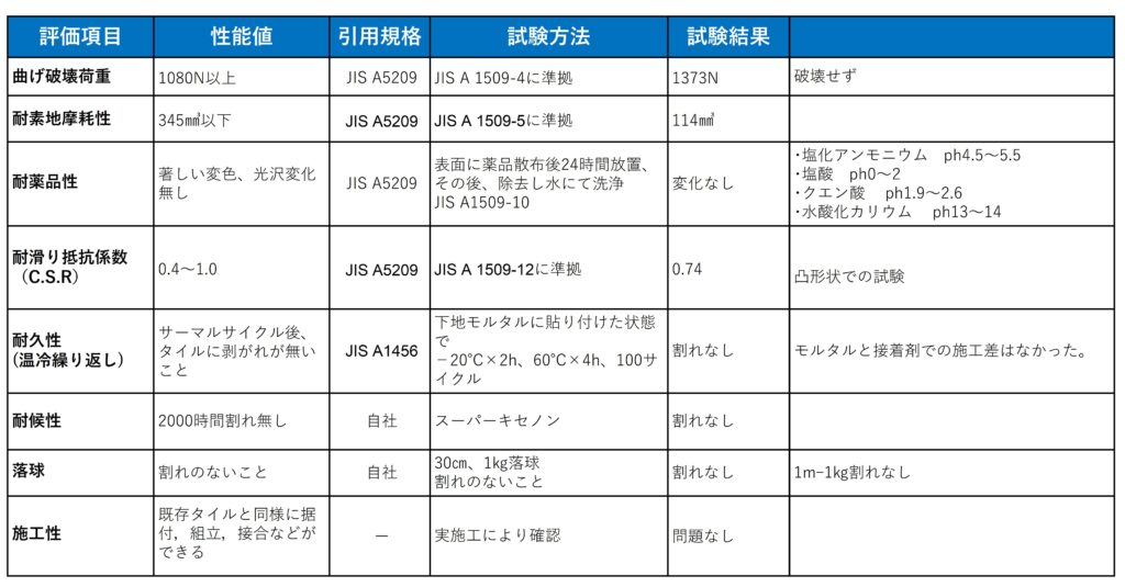 JIS規格などの各種試験により性能値を満たすことを確認しております。